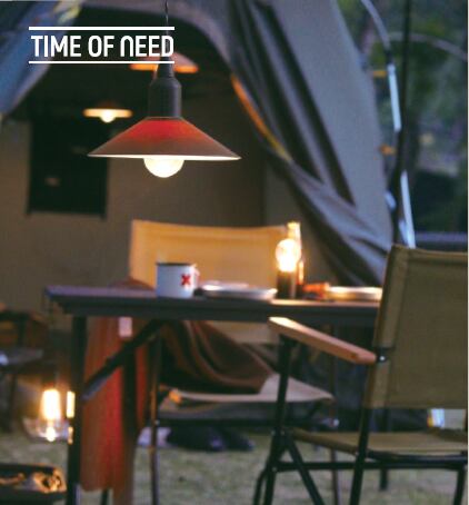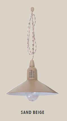 光が優しく広がるシェード付きのタイプ2。ソケットとシェード、電球がそれぞれ分割でき、使わないときはコンパクトに収納できるので、持ち運びにもかさばりません。